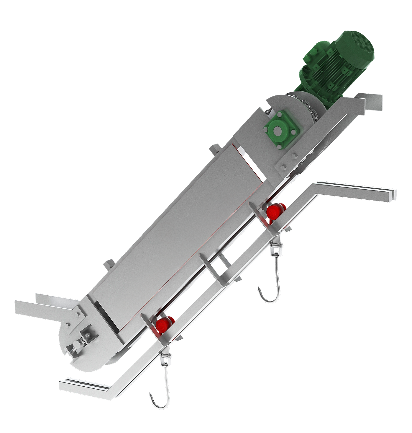 Et parçalarının farklı seviyelere güvenli taşınması için tasarlanmış elevatör sistemi. Otomatik yükseklik kontrolü, güvenlik sensörleri, paslanmaz çelik yapı.